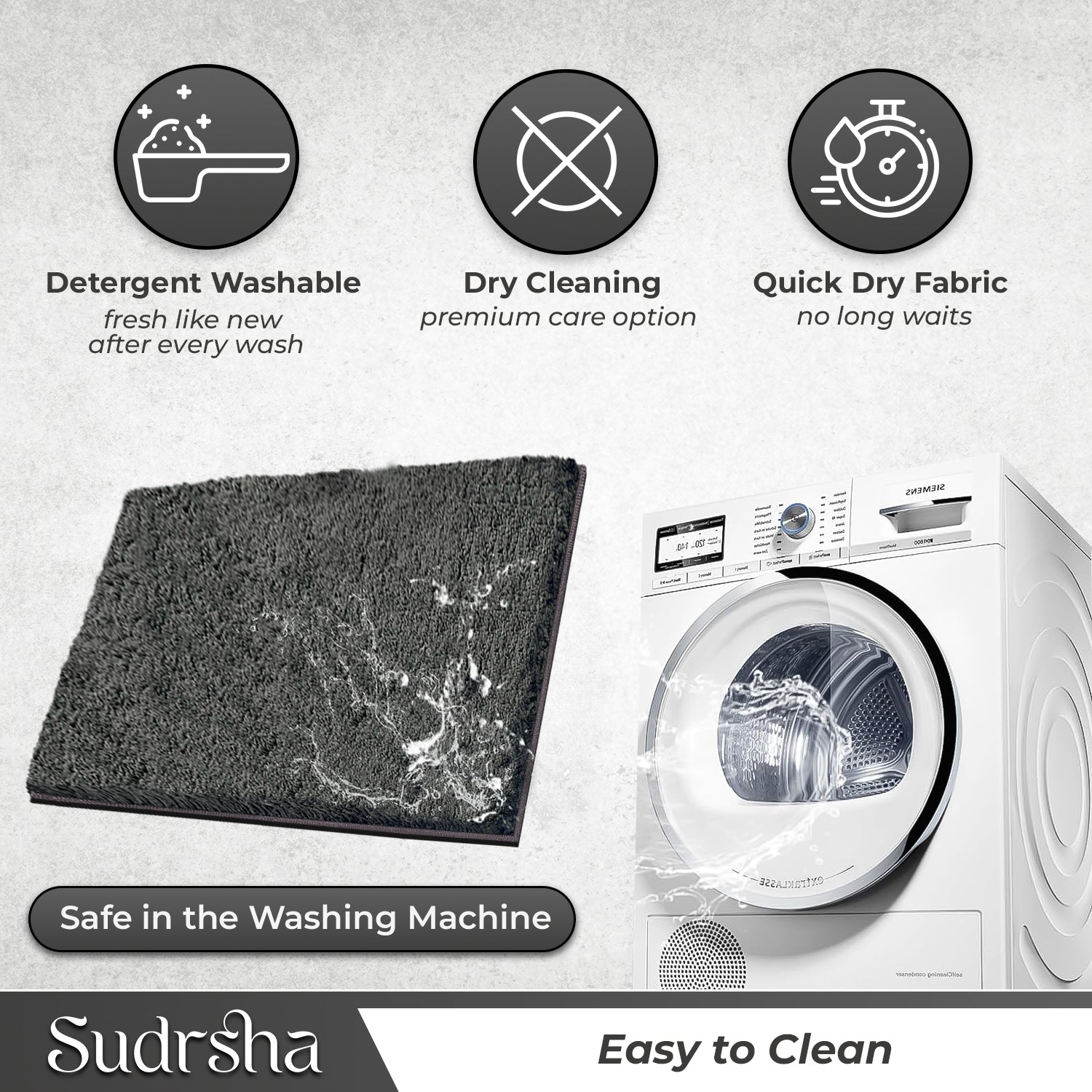 Add comfort and elegance to your bathroom with the SITTELLA 1800 GSM Super Soft Microfiber Bath Mat in Grey. Its extra-thick microfiber fabric (1800 GSM) feels luxuriously soft underfoot, while the high absorbency ensures your bathroom stays clean and dry after every shower. The quick-dry material prevents dampness and odors, making it more hygienic than regular mats. With a non-slip backing, this rug stays securely in place for safe use on wet floors. Easy to wash and long-lasting, it’s the perfect combination of style, comfort, and functionality for any modern bathroom.