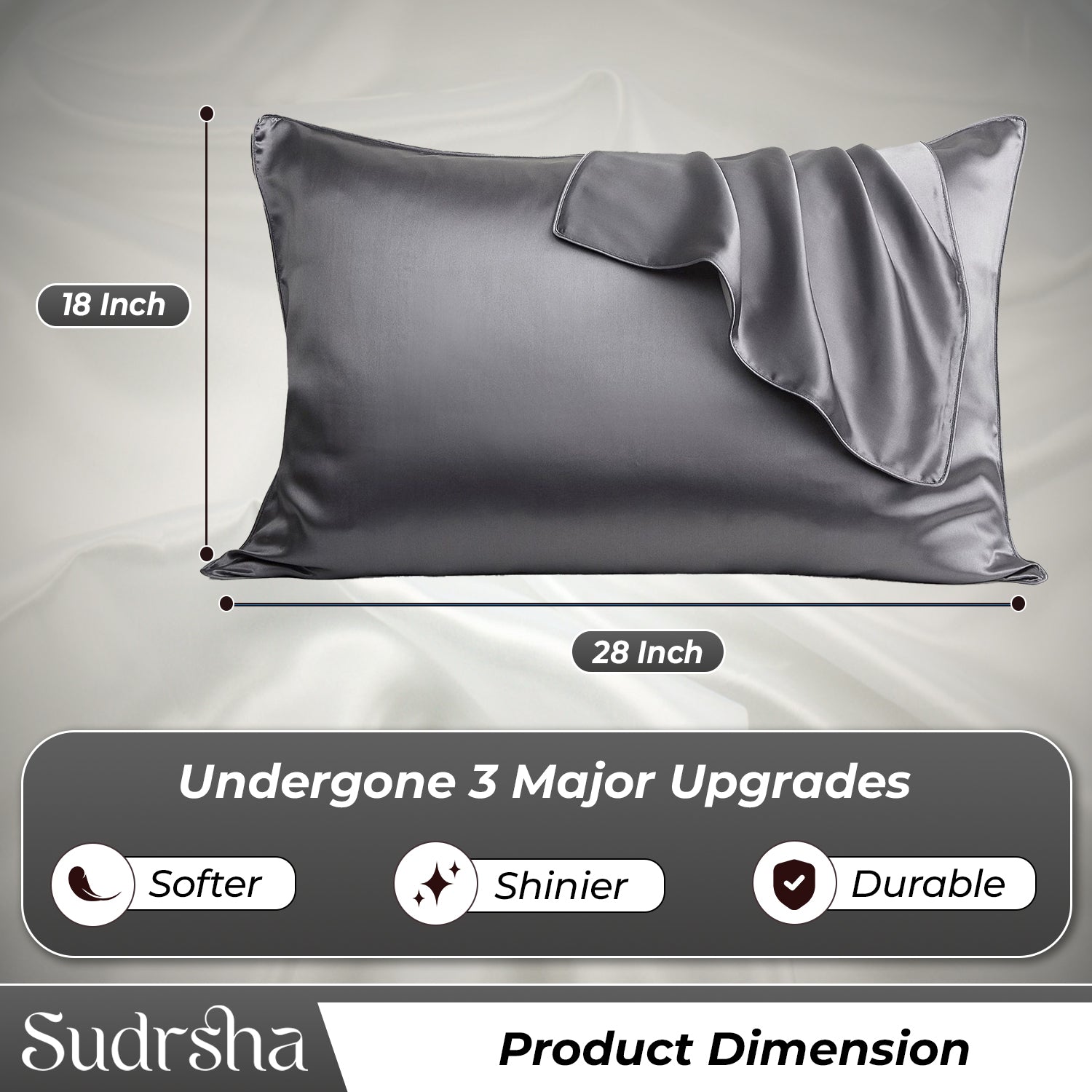 Sudrsha Solid 600 TC Satin Silk Pillowcases(Grey)